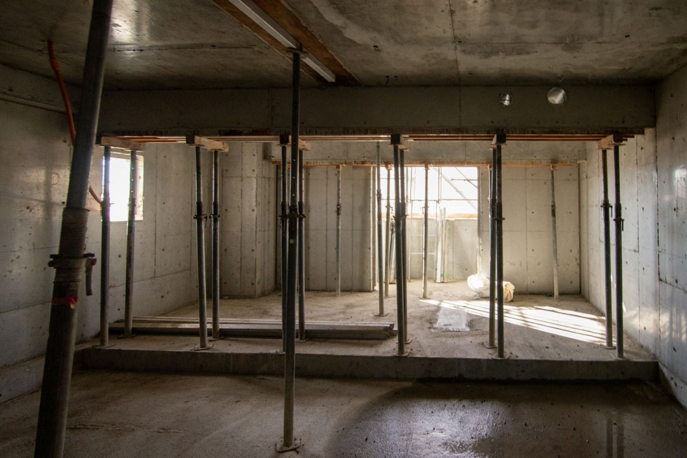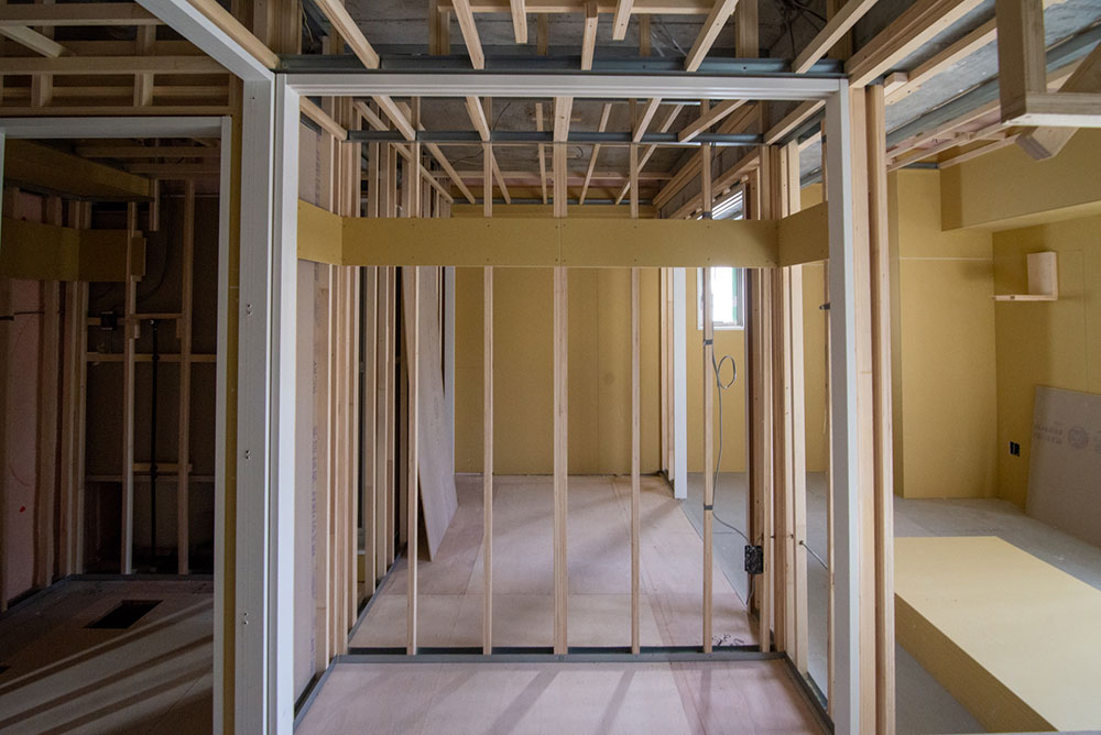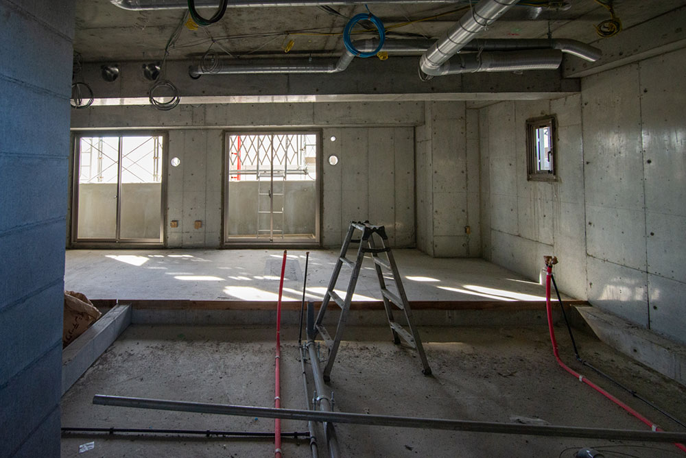 2~4階は造作工事中です。写真は3階のものですが、どの階もだいたい同じような進行具合です。